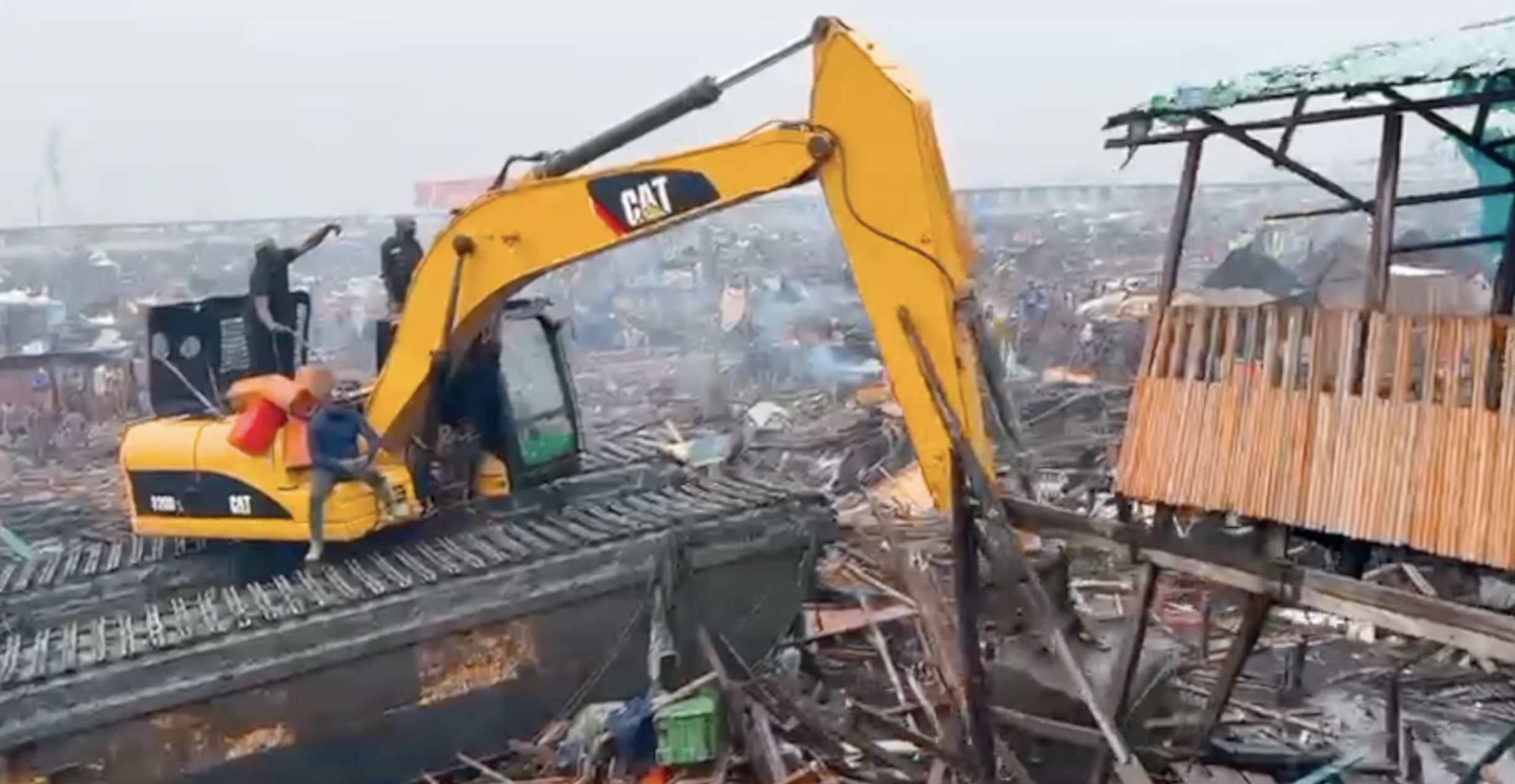 Makoko, a historic lagoon-side community of over 100,000 people, has faced a new wave of “urban renewal” demolitions since late December 2025. Amphibious excavators escorted by armed police have been dismantling wooden homes on stilts and along the waterfront, pushing families into boats, rubble, or the open air.